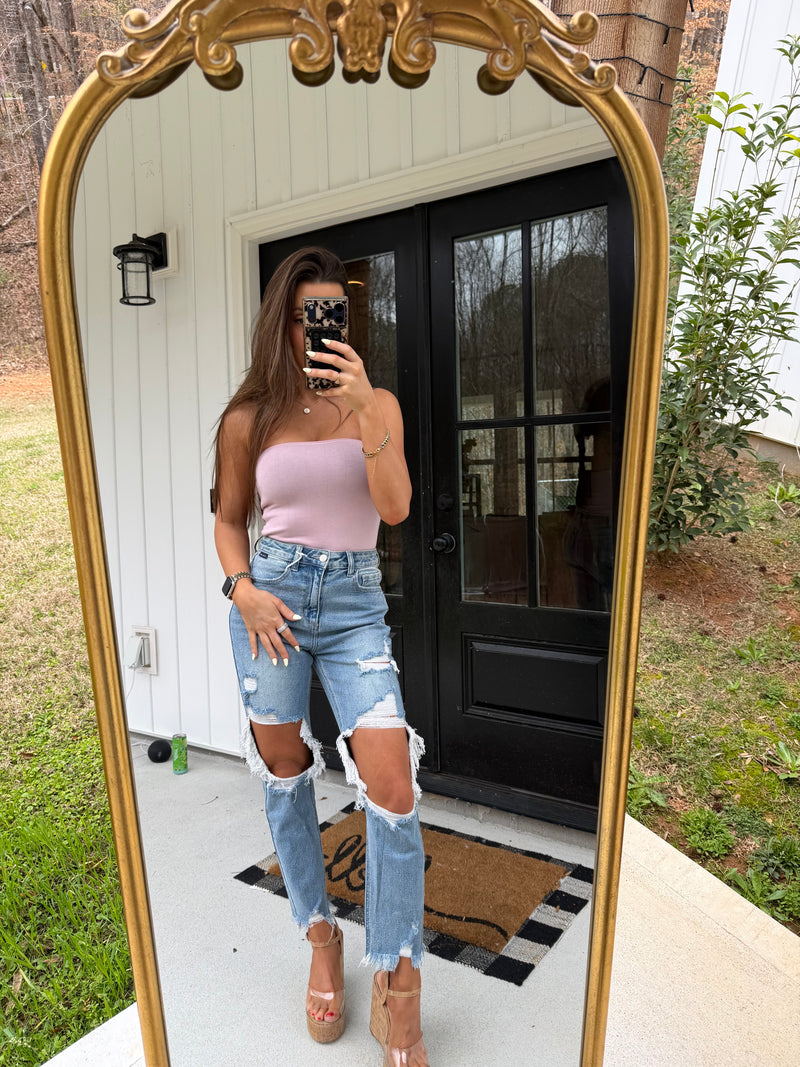Reversed Tube Top— Lt pink/navy