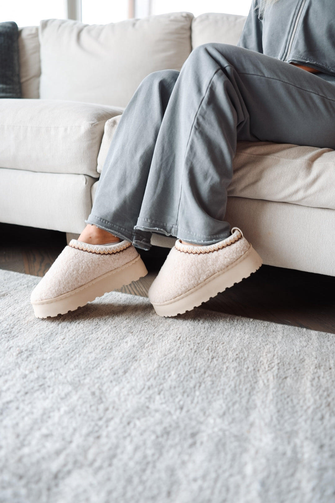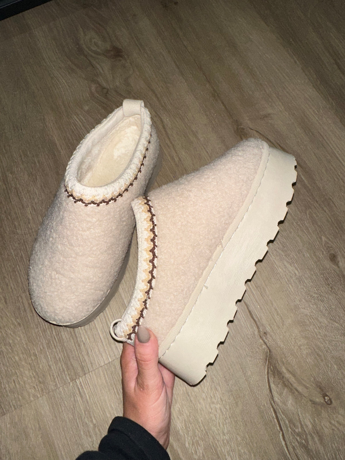 UGG Style Platform Slippers- Beige