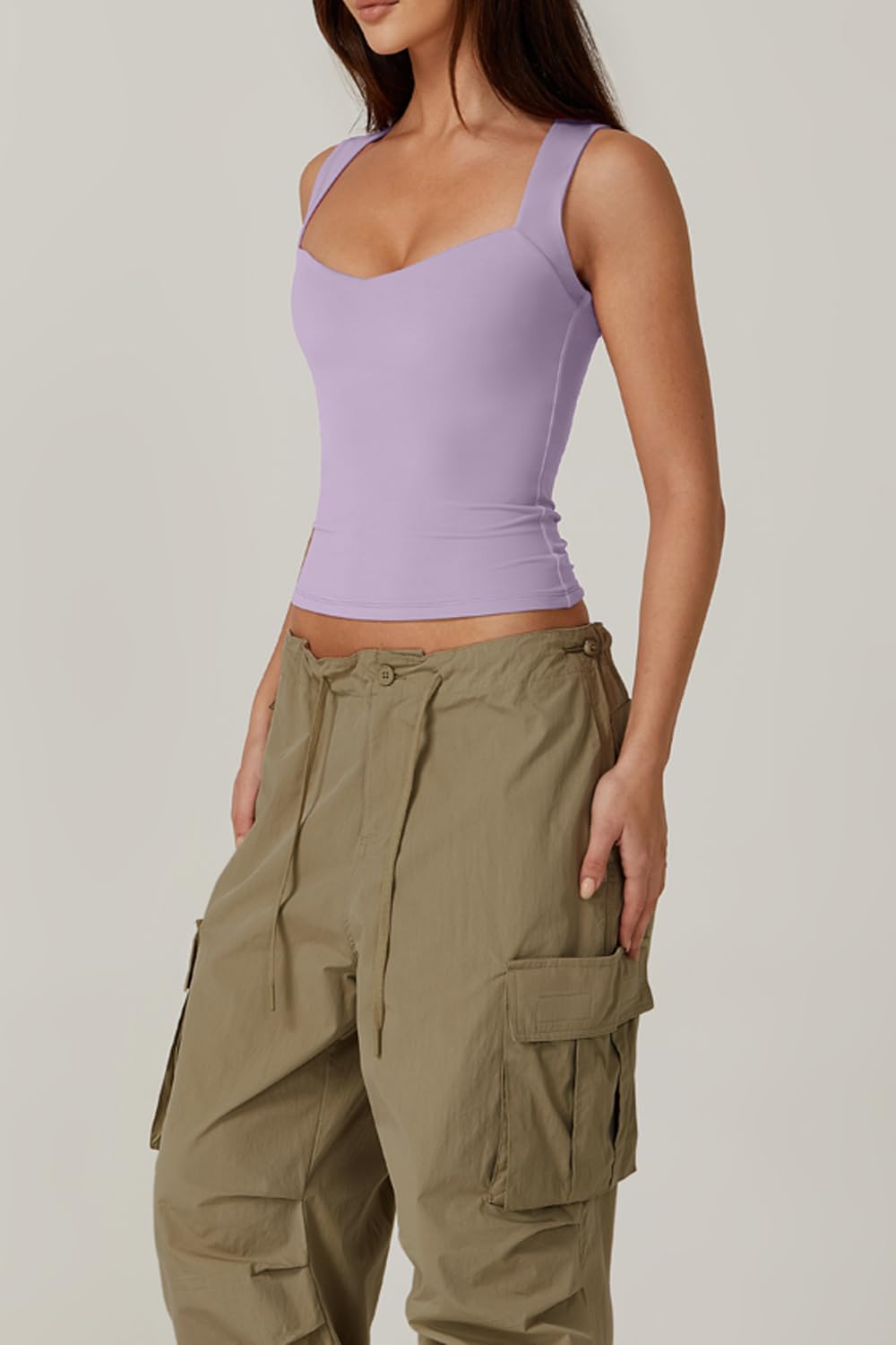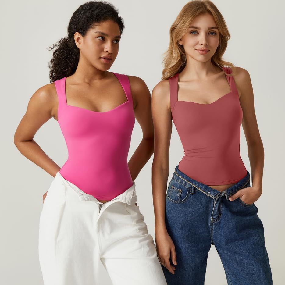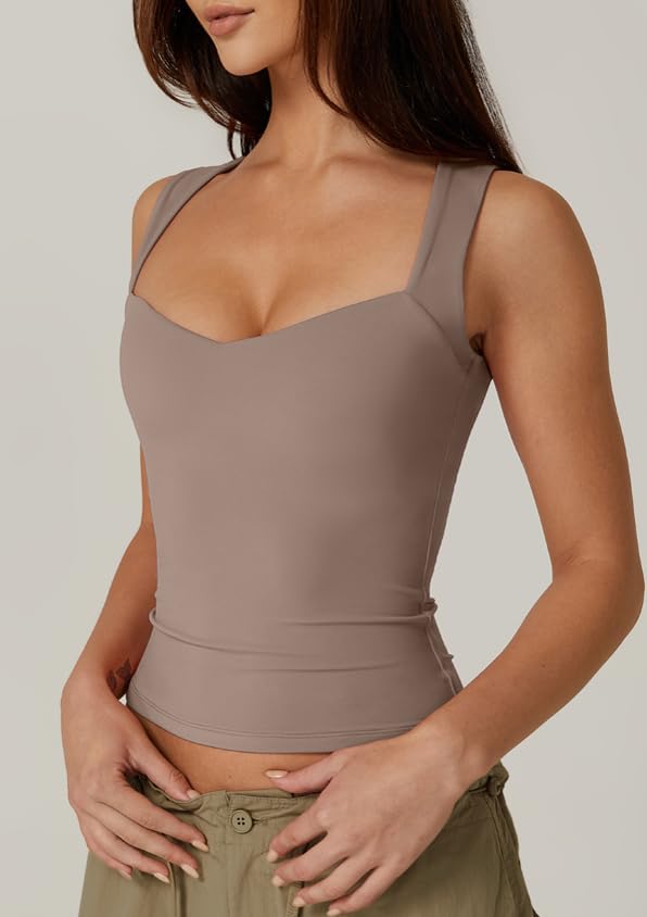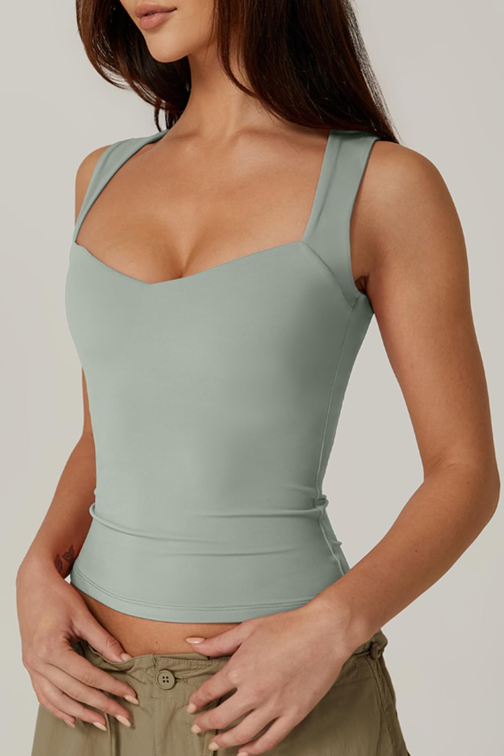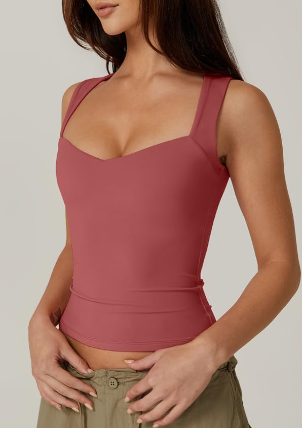 • QINSEN CLOUND MATERIAL: Our sweetheart neck sleeveless T shirt designed in our premium polyamide high-stretch breathable fabric with dual layered makes it compressive fit and create you a flattering silhouette.Just like a second skin wraps itself around your body.