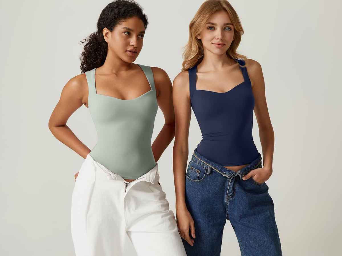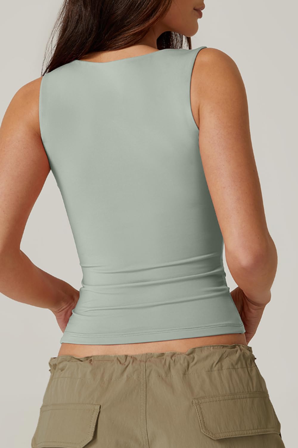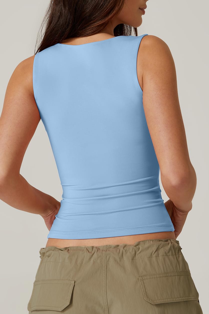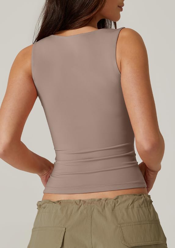 • QINSEN CLOUND MATERIAL: Our sweetheart neck sleeveless T shirt designed in our premium polyamide high-stretch breathable fabric with dual layered makes it compressive fit and create you a flattering silhouette.Just like a second skin wraps itself around your body.