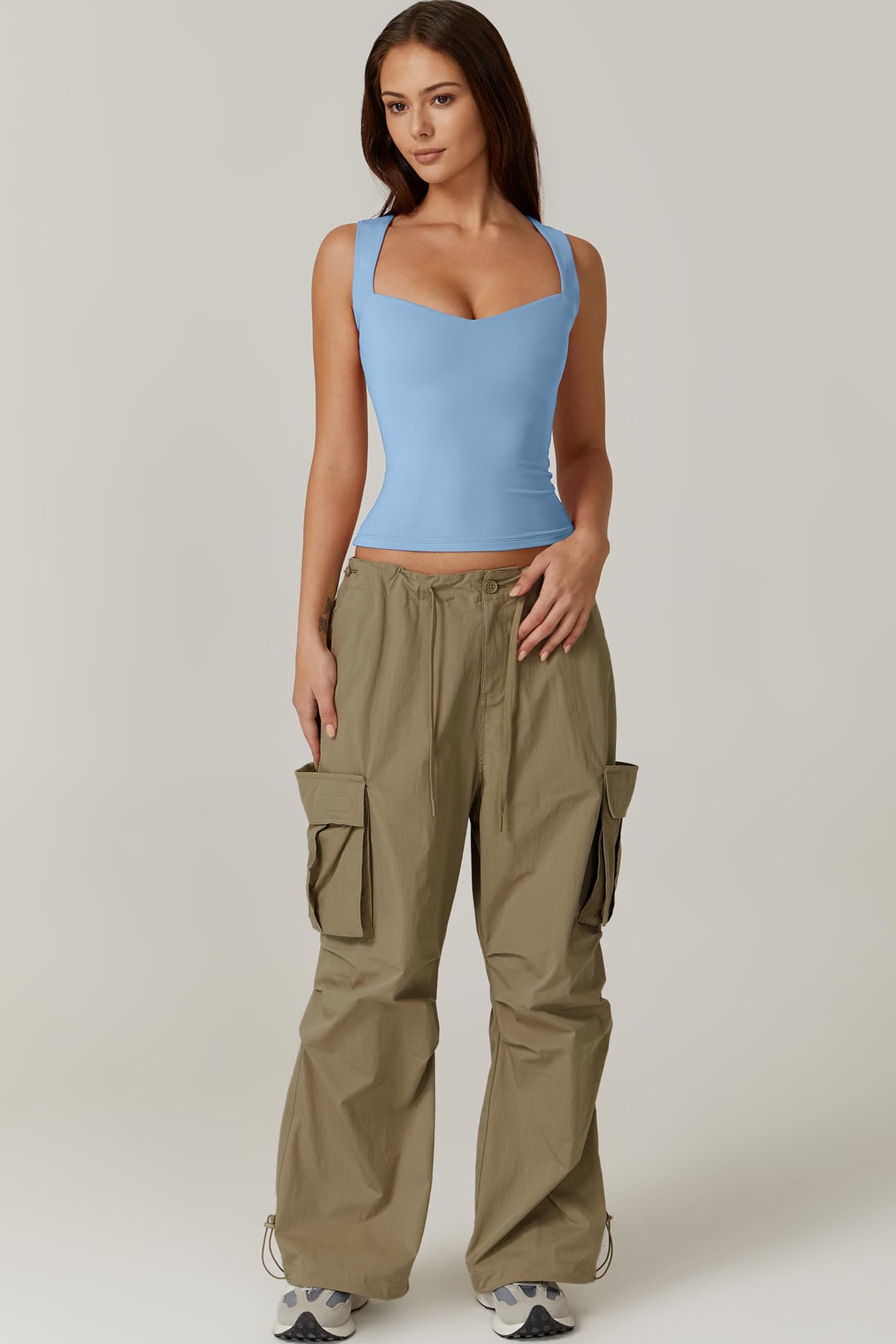 • Features: Stretch bodyocn cut to the body,the versatile staple is complete with a flattering sweetheart neckline and sleeveless tank top.Slimming fit with cropped length design of this basic tee top accentuates your curves and provide you with a comfortable fit meanwhile.