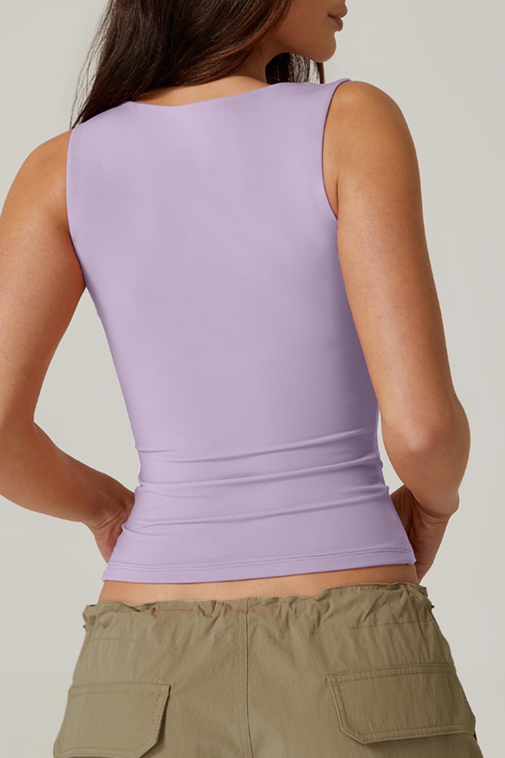 QINSEN Women's Sexy Sweetheart Neck Sleeveless T Shirts Double Lined Tees Slimming Fit Tops