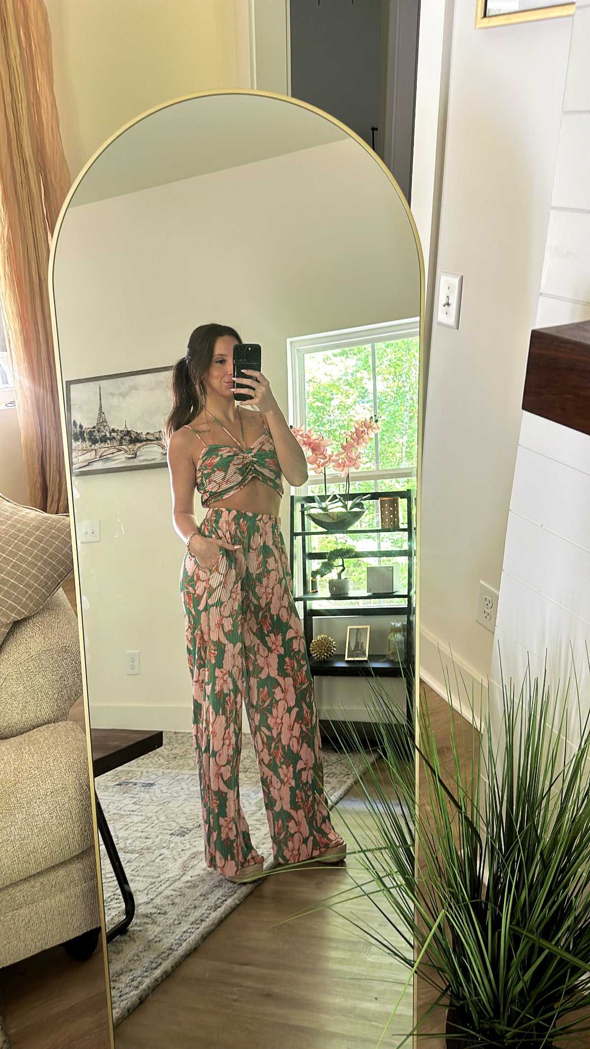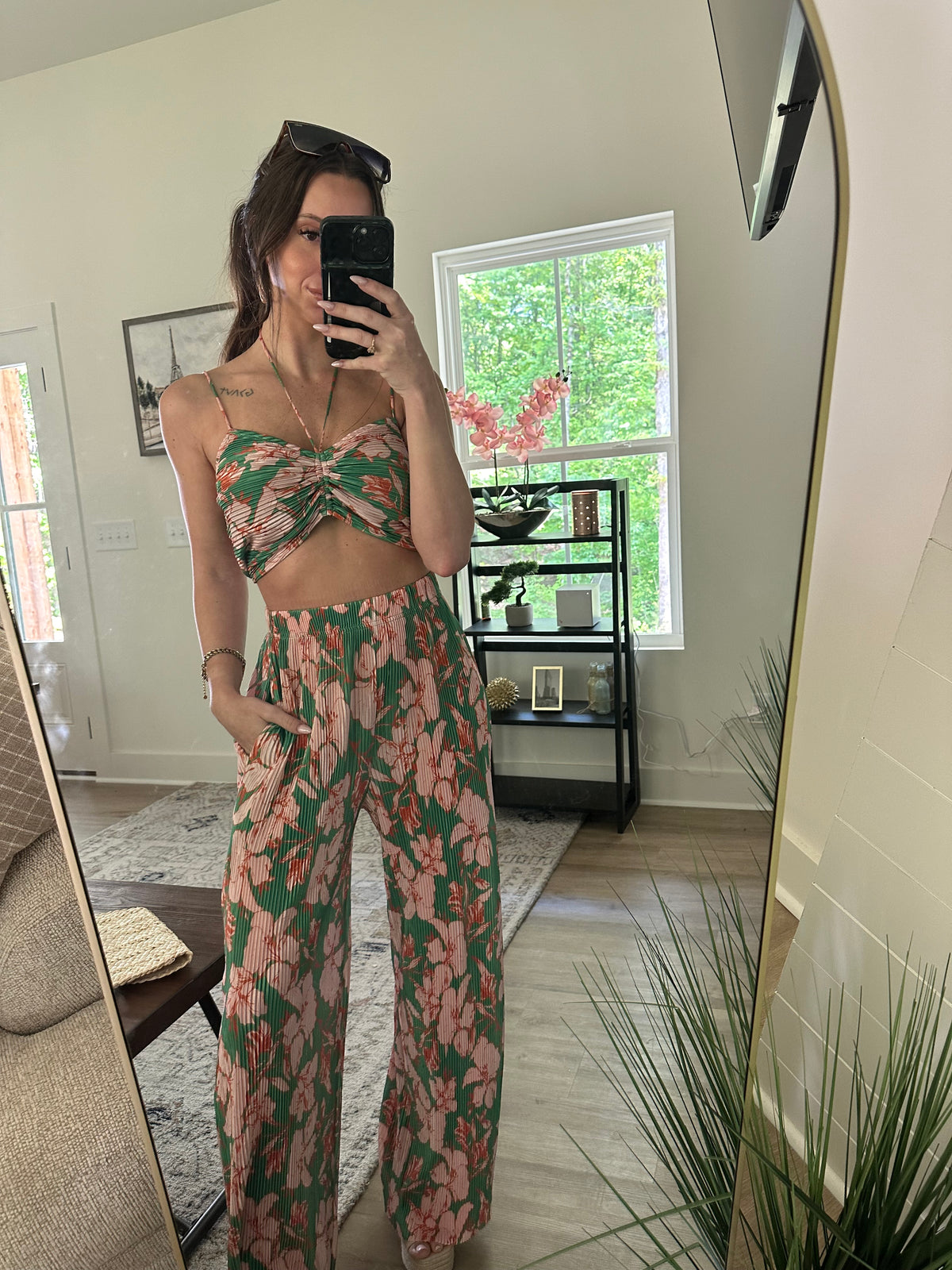 Printed Pleat Wide Pants- Green/Peach *BOTTOMS ONLY