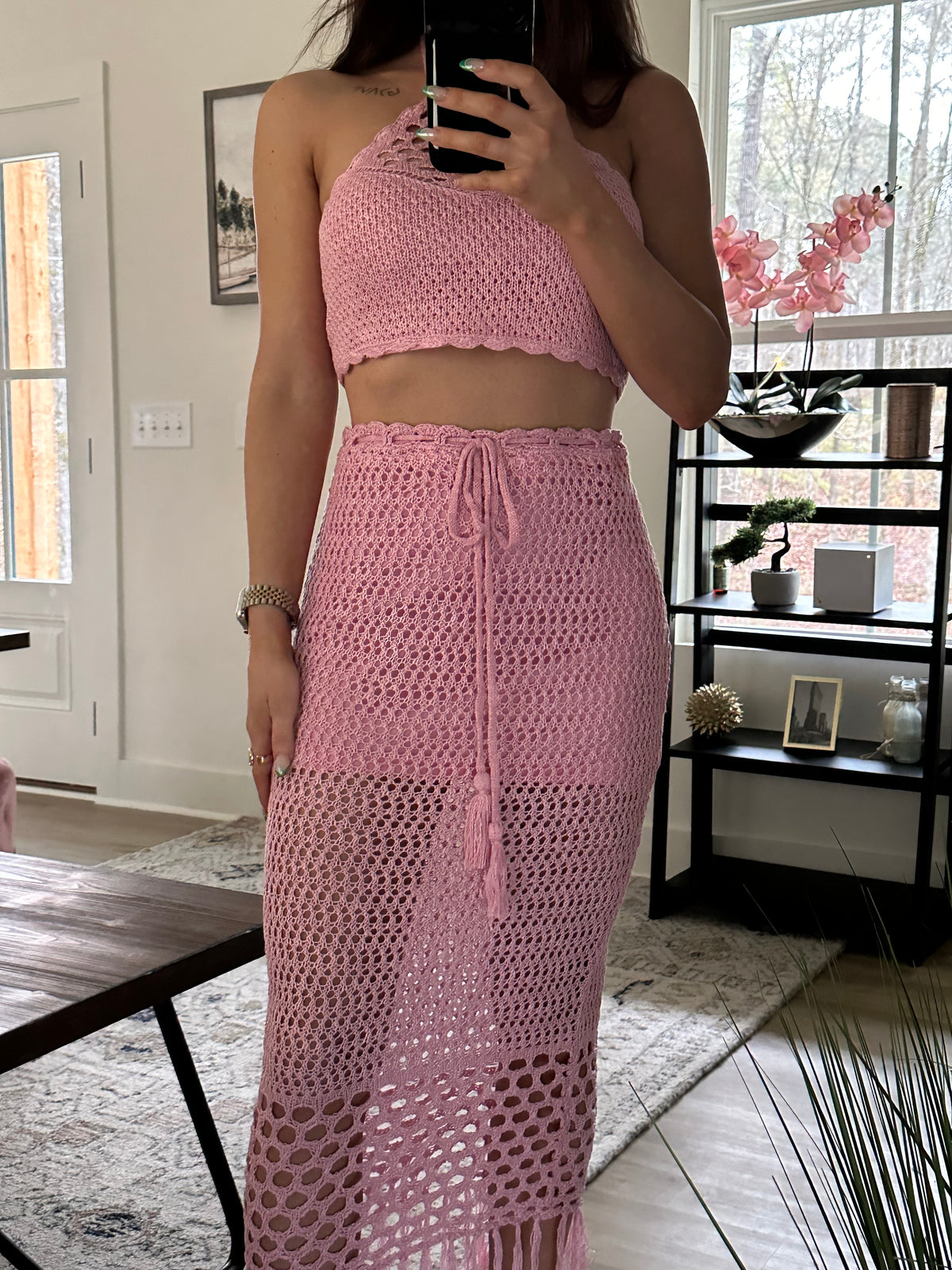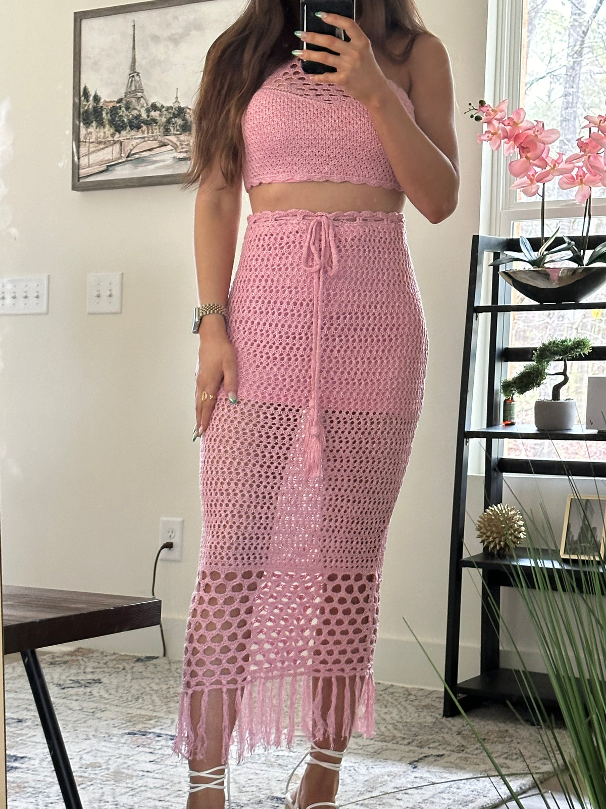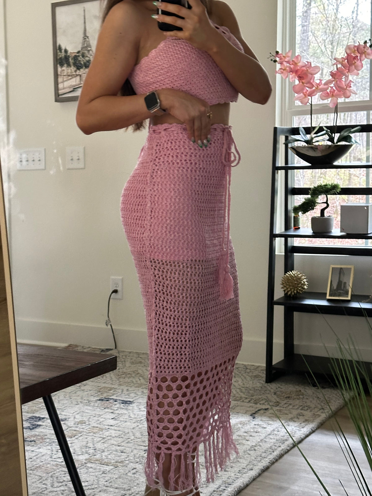 Resort Crochet Fringe SET- Pink