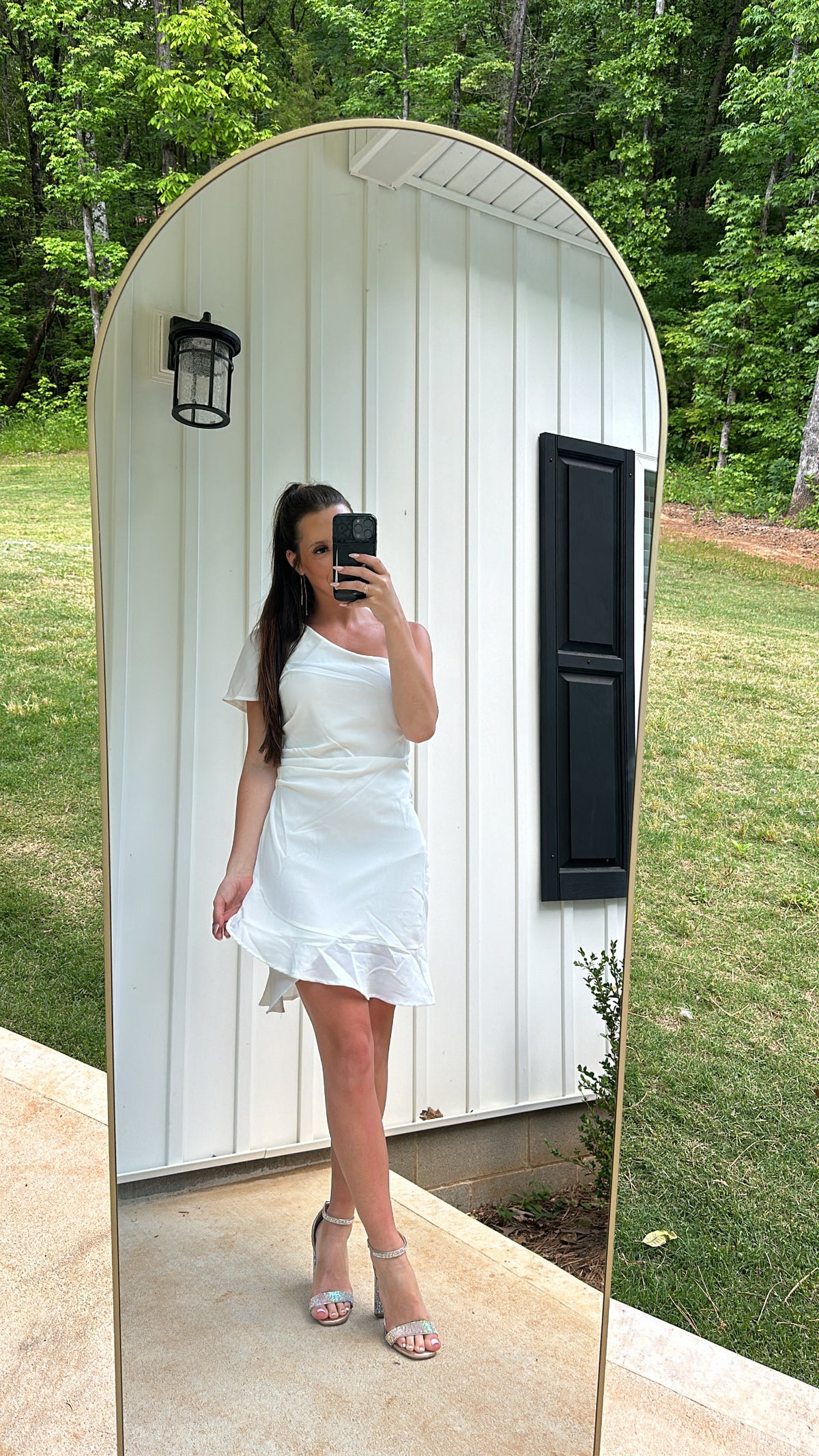 Experience the perfect blend of style and comfort with our Short Sleeve Flutter Woven Dress. Made with shirred detailing and a ruffled hem, this dress offers a flattering fit for all body types. Its lightweight and breathable fabric makes it ideal for any occasion. Elevate your wardrobe with this must-have dress.