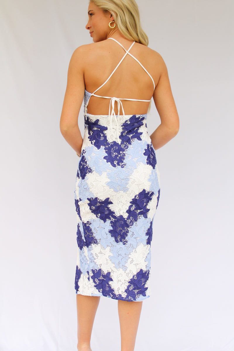 Paige Floral Textured Midi Dress- Blue/White