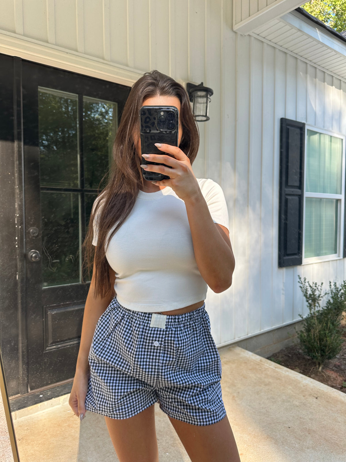 Expertly crafted for a sleek look, our Basic Crop in white is a versatile must-have. Made with high-quality material, it offers a comfortable fit and effortless style. Pair it with anything for a timeless and chic outfit. Classic and simple, this crop is a wardrobe essential.