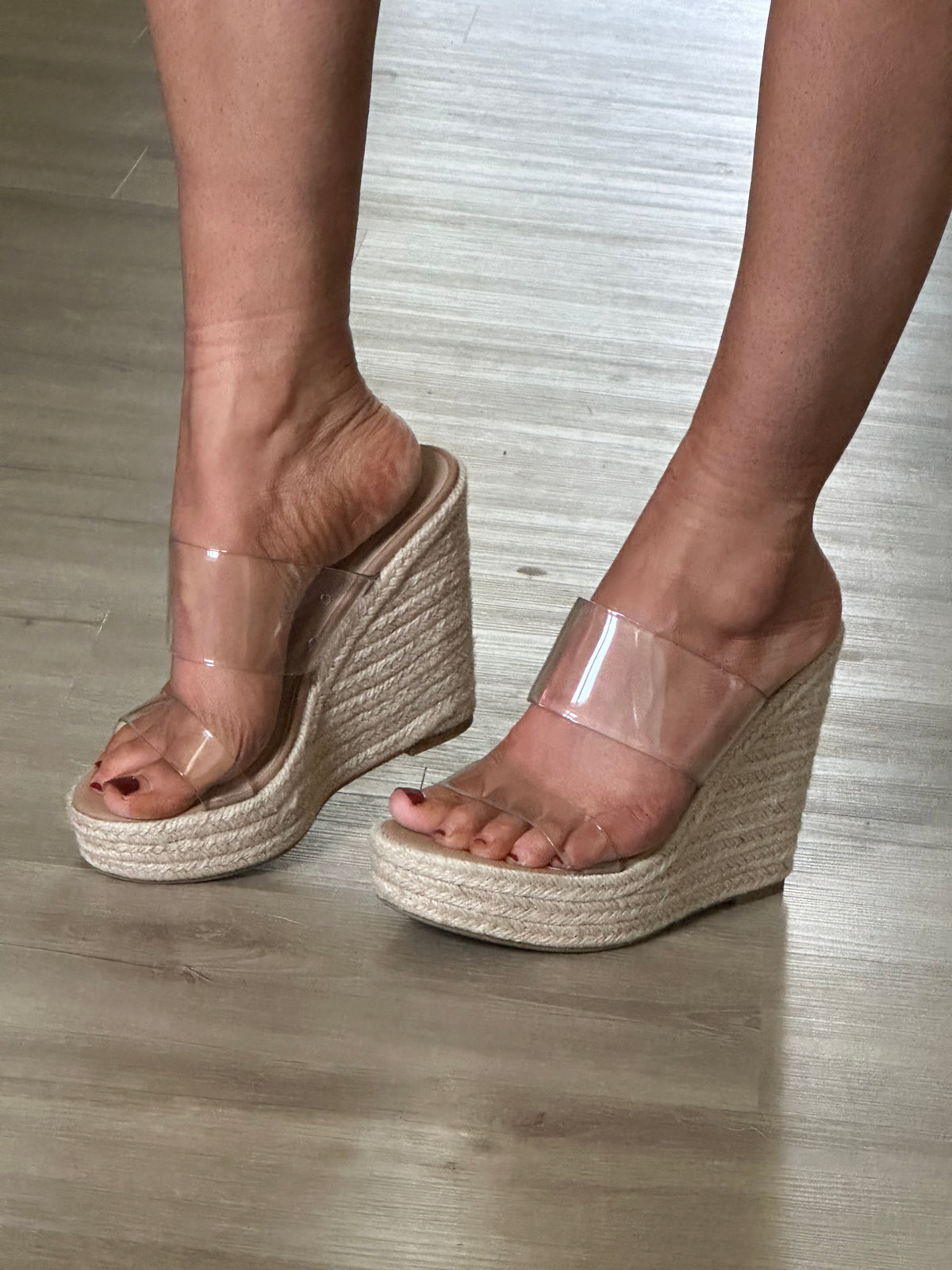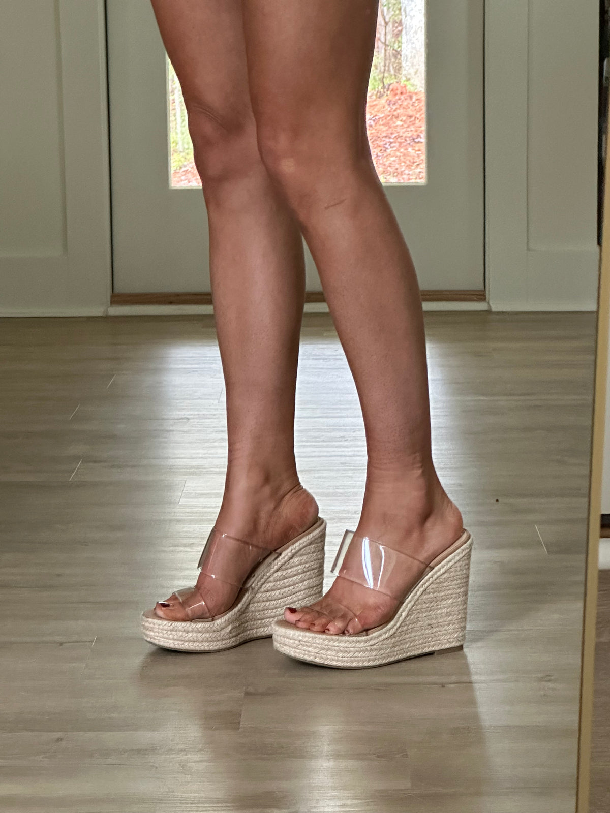 These clear wedges offer a stylish look for any outfit. The perfect choice for a trendy, fashion-forward individual. With these wedges, you'll stand out in any crowd.