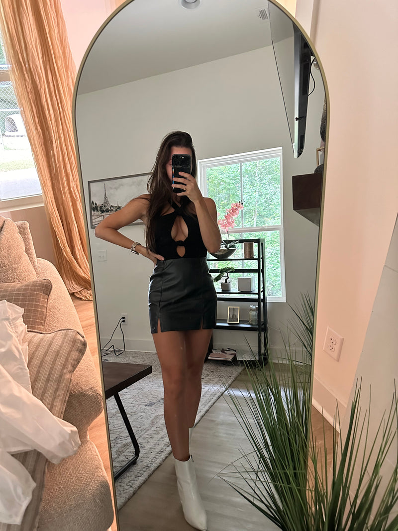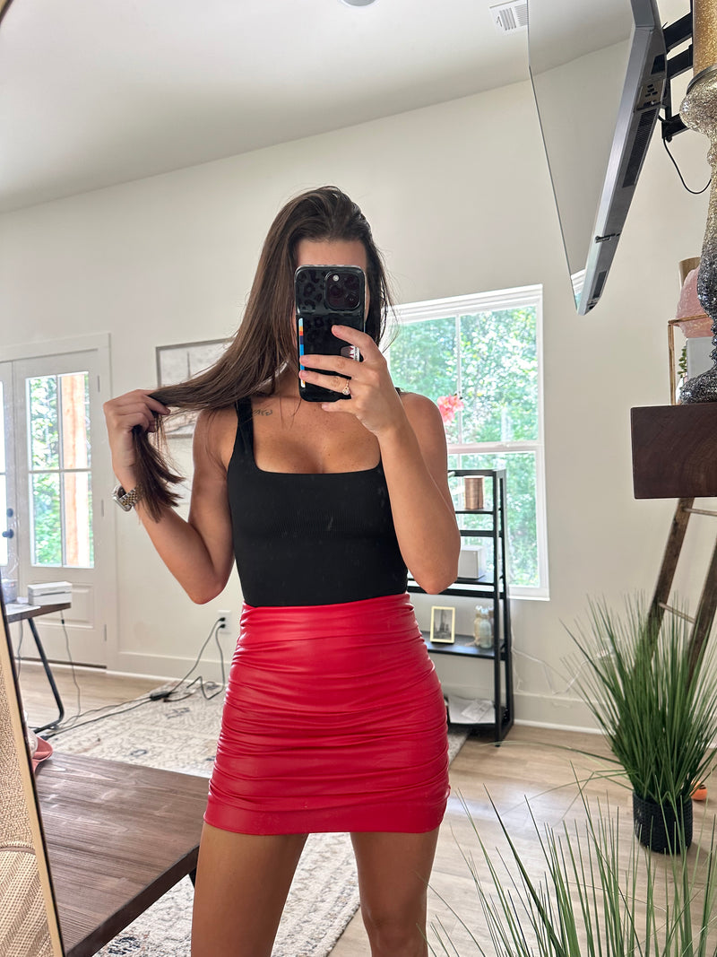 Ribbed Sleeveless Wide Square Neck Bodysuit- Black