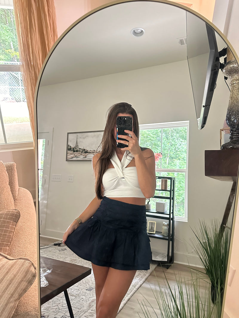 Wide Strap Detail Ribbed Crop TOP ONLY- White
