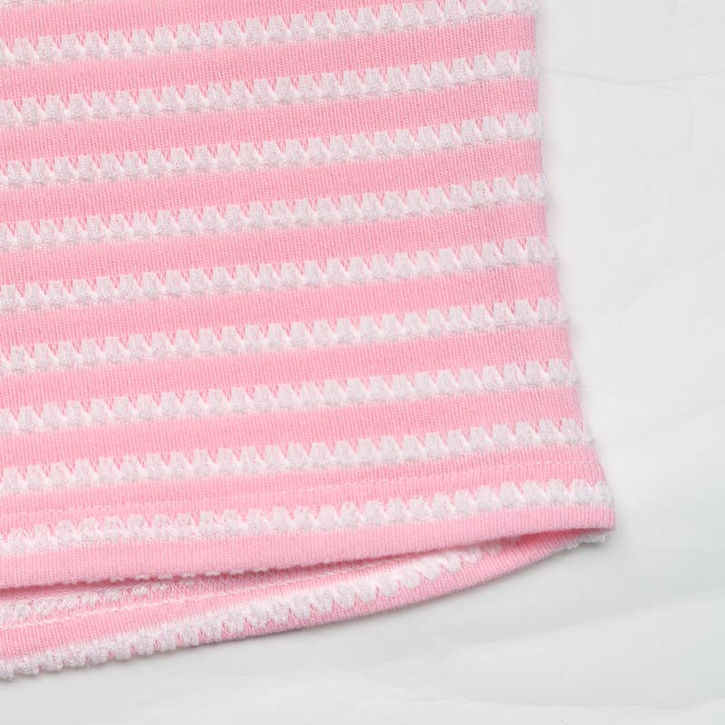 Strapless Striped Knit Tube Crop Top— Pink